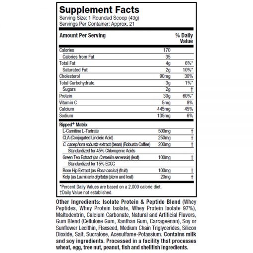 NITRO – TECH® Ripped tính năng thành phần phổ biến như L – carnitine L – tartrat , chiết xuất trà xanh và axit linoleic liên hợp ( CLA ). Các nhà nghiên cứu MuscleTech® cũng bao gồm liều tảo bẹ , hoa hồng chiết xuất hip và bột dầu MCT cho một công thức thật sự độc đáo . Thêm vào đó, nó có chứa các thành phần khoa học nghiên cứu của C. robusta canephora cho kết quả giảm cân thực sự.